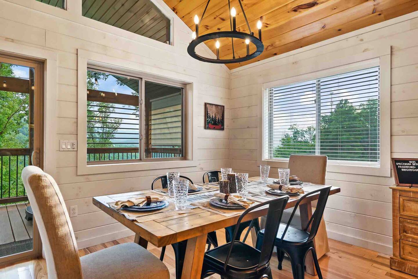 Parking for 2 vehicles on a paved driveway which is flat! All roads leading to the cabin are blacktop/paved! 4WD recommended during the winter months due to potential snowfall/ice and mountain terrain with some steep inclines.